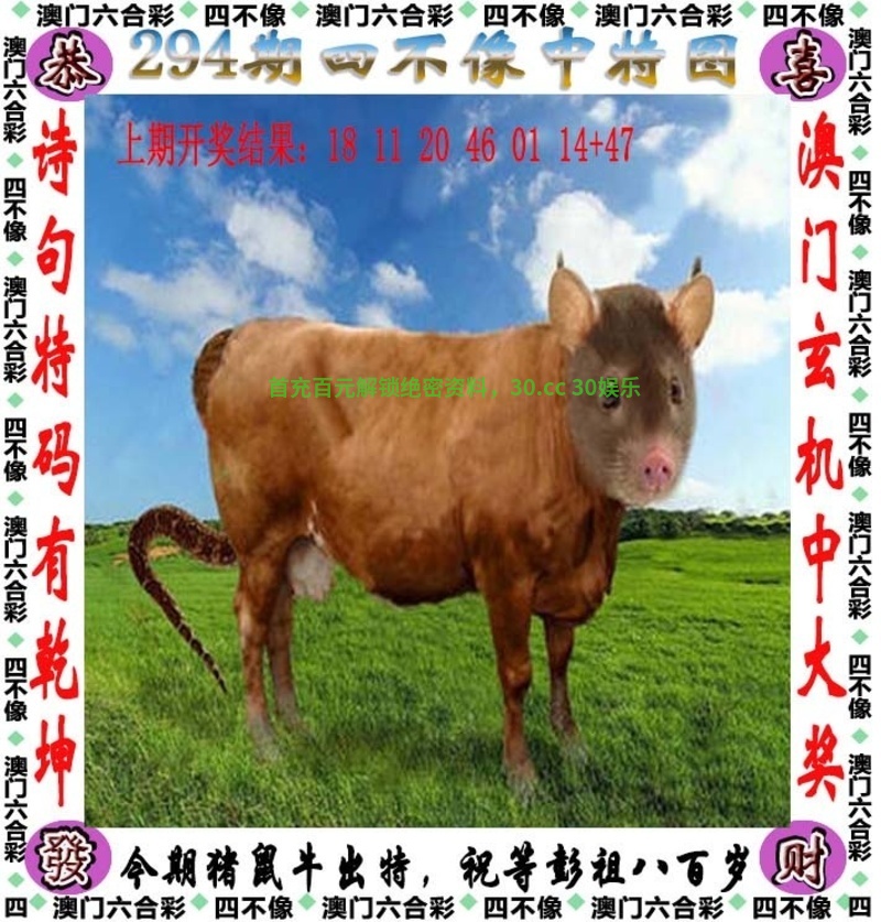 295期:今期龙兔鸡出特,万里烟霞在目前【开:牛05】 ①杀鼠羊猴(06.18.30.42.11.23.35.47.10.22.34.46) ②解特肖龙兔鸡牛猪 ③大数+合单 |